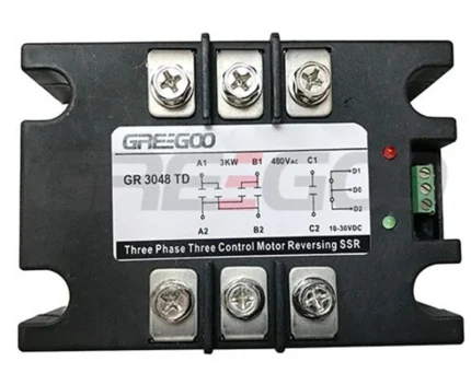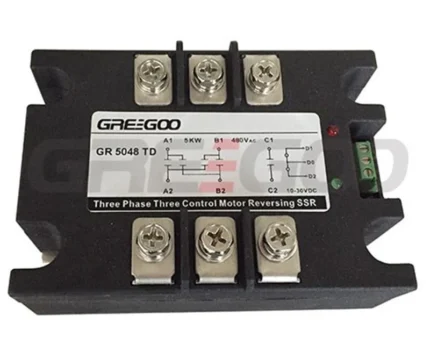 Üç fazlı Motor Geri Dönüş katı hal rölesi . 20A, 40A, 60A ve 80A @ 48-530 VAC – Ağır endüstriyel yükler için SCR çıkışı – DC kontrolü – LED giriş durum göstergesi